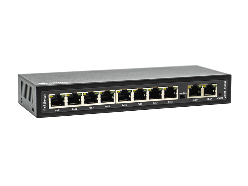 Optimus U1E-8F/2G - неуправляемый PoE-коммутатор с внешним блоком питания. Коммутатор оснащен портами 10/100 Мбит/с с поддержкой PoE (технология передачи питания по сетевому кабелю вместе с данными) к каждому из которых можно подключать сетевые устройства (IP-камеры, IP-телефоны, беспроводные точки доступа).